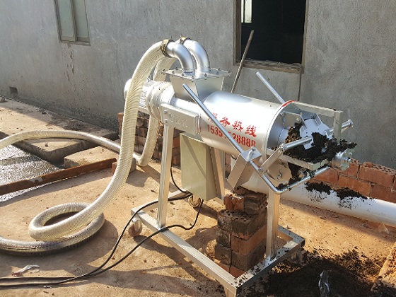 用液下泵將原糞便提高送往牛糞處理機(jī)內(nèi),擠壓成型絞龍將糞水慢慢引向人體正前方,另外不斷提升外緣的工作壓力,驅(qū)使原材料中的水份在邊壓帶濾的功效下擠壓網(wǎng)篩,排出排水管道。牛糞處理機(jī)的工作中是持續(xù)的,其原材料持續(xù)的提高至人體內(nèi),外緣的工作壓力持續(xù)擴(kuò)大,當(dāng)大到一定水平時(shí),就將倒料口頂開(kāi),擠壓擠壓成型口,做到擠壓成型進(jìn)料的目地。假如注入的排泄物水過(guò)多也會(huì)經(jīng)溢液管排在原化糞池中也具有了拌和的功效,經(jīng)螺旋式擠壓成型過(guò)慮分離出來(lái)出的污水可立即配送至沉砂池等。以便把握進(jìn)料的速度水分含量,能夠 調(diào)整服務(wù)器正下方的平衡塊,以做到令人滿(mǎn)意適度的含水量。